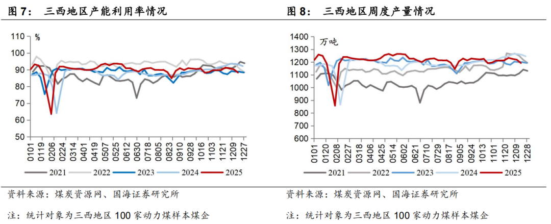 本周三西地区产能利用率、产量环比下降:截至12月17日,三西地区产能利用率为88.3%,周环比下降1.94pct,三西地区周度产量为1192.5万吨,周环比下降26万吨。