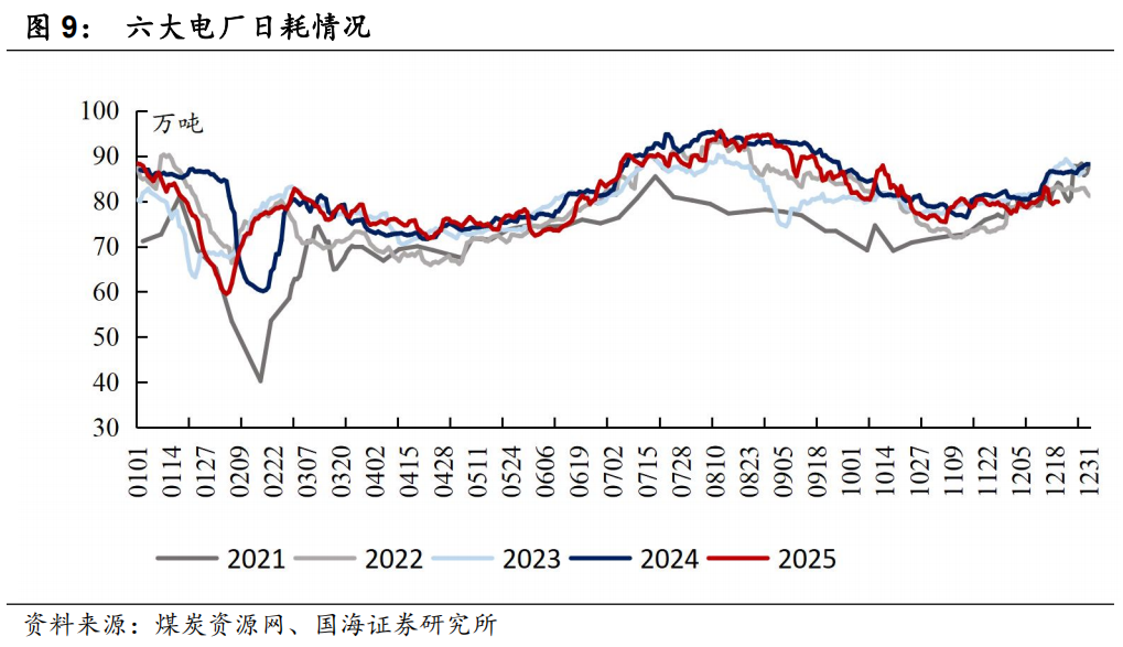 本周六大电厂日耗环比下降:截至12月19日,六大电厂日耗为80.0万吨,周环比下降0.6万吨。