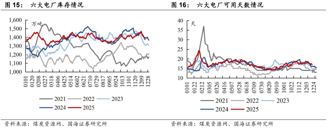本周六大电厂可用天数环比下降:截至12月19日,六大电厂可用天数为17.1天,周环比下降0.5天。