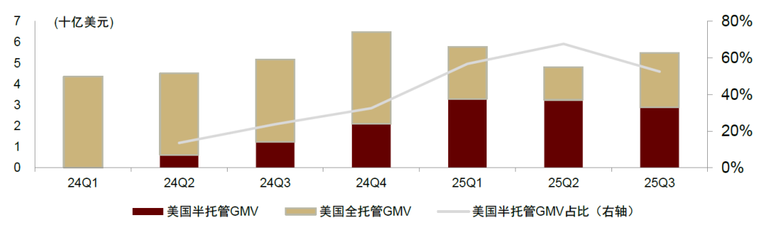 图表:Temu美国半托管占比持续提高,全托管恢复后有所回落