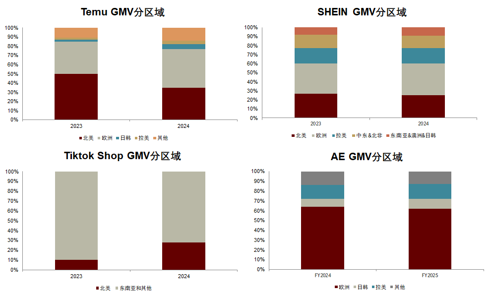 分散化正在成为出海电商平台的另一大主线趋势。过去几年,主要出海平台在单一区域实现规模与用户积累后,开始向欧洲、拉美、东南亚等市场拓展。一方面,平台在过去的几年发展中已经具备了单一地区持续运营和优化UE的能力,并且有将单一地区能力向全球复制的意愿;另一方面,美国关税政策的不确定性成为加速分散化的重要催化剂。我们认为分散化战略使平台能在监管与成本压力上升的环境下平滑区域风险、优化利润结构,并建立更稳健的全球增长基础。