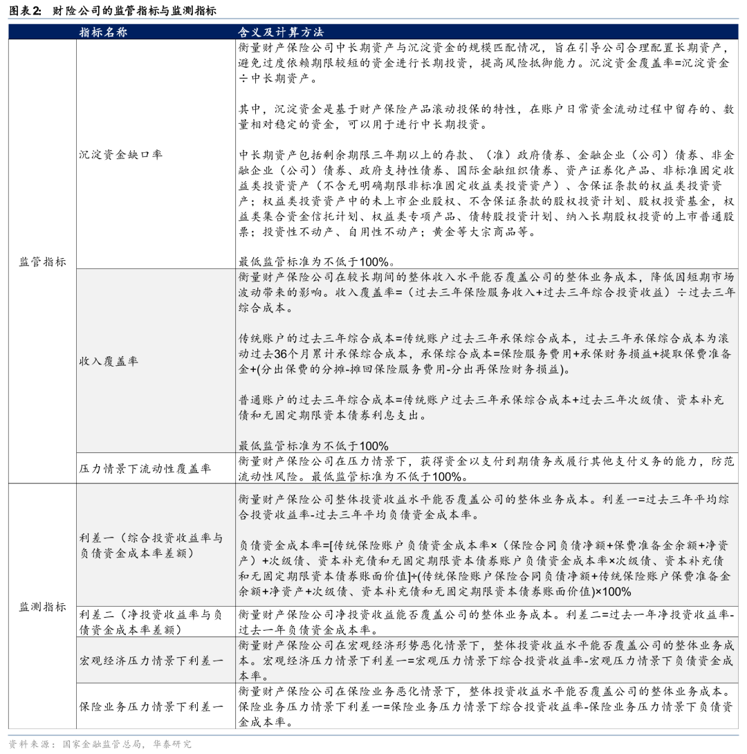 《意见稿》首次提出了久期、收益方面的量化监管指标,或对寿险公司的经营行为产生较大影响。1)有效久期缺口不高于5年或低于-5年。行业内中小寿险公司或面临一定压力,或需要持续拉长资产久期;2)过去三年净投资收益覆盖率>100%,净投资收益即我们过往一再强调的现金投资收益,包含利息、股息和租金,要高于负债保证成本。在利率低位震荡的背景下,保险公司或需要持续提升股息贡献,险资的红利策略仍然是重要投资方向(详见我们的报告《险资红利策略2.0》,2025年10月24日);3)过去五年综合投资收益覆盖率>100%,综合投资收益包含了现金收益和资本利得收益,要高于包含了保证成本和分红险/万能险的浮动成本的资金成本。过去两年,在资本市场向好的背景下,险资综合投资收益表现强劲,长期看资本市场持续向好对险资总体收益至关重要。财产险监管指标包括沉淀资金缺口率、收入覆盖率。同时产寿行业均需要根据《意见稿》中其他有关规则,确保压力情形下的流动性覆盖率达标。
