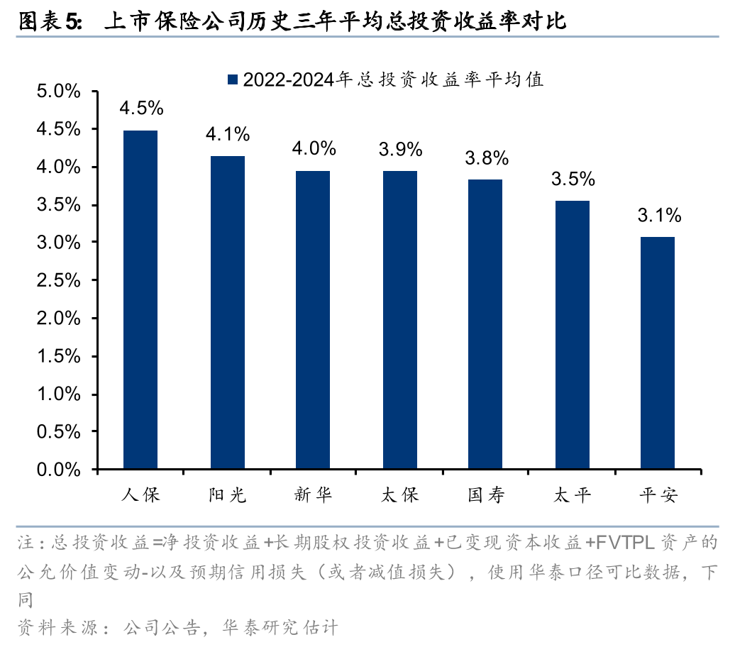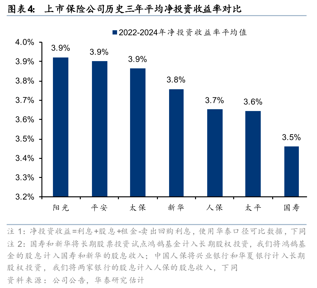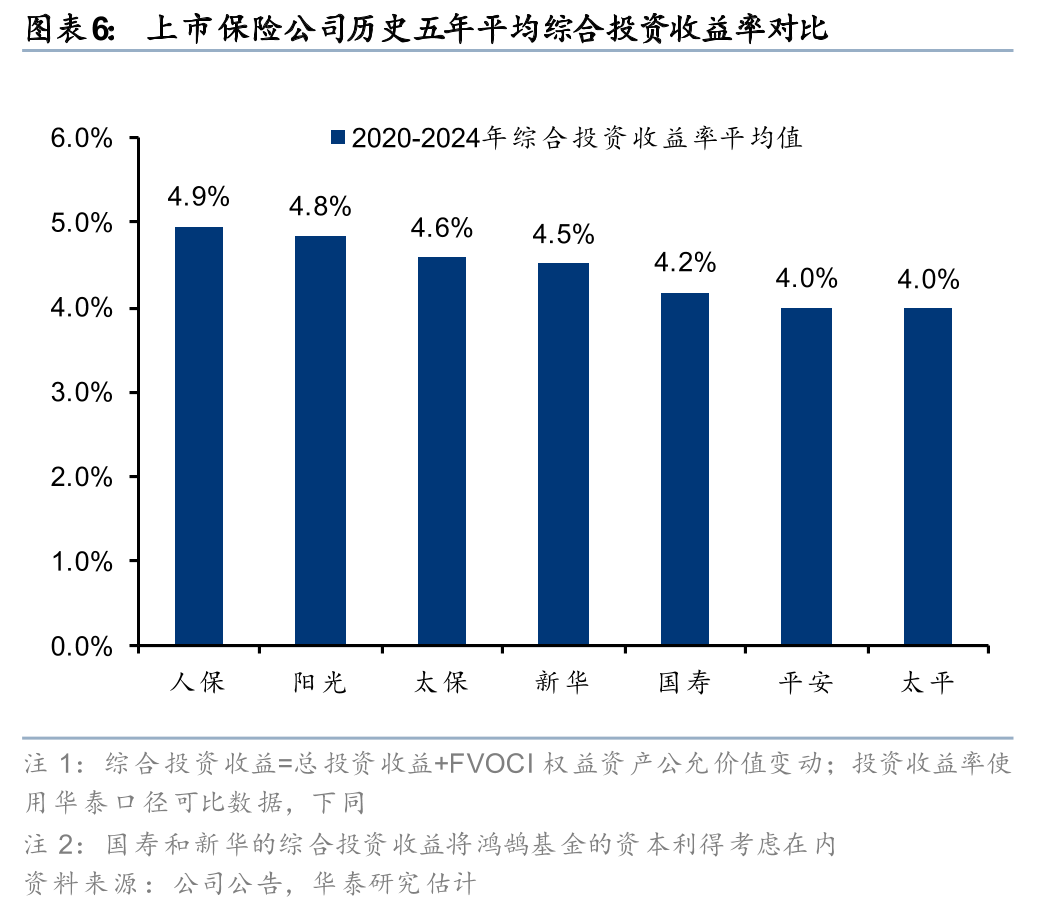 需要注意的是,为了使各公司投资收益率数据可比,我们使用华泰调整的可比口径数据,具体调整方式见附录。