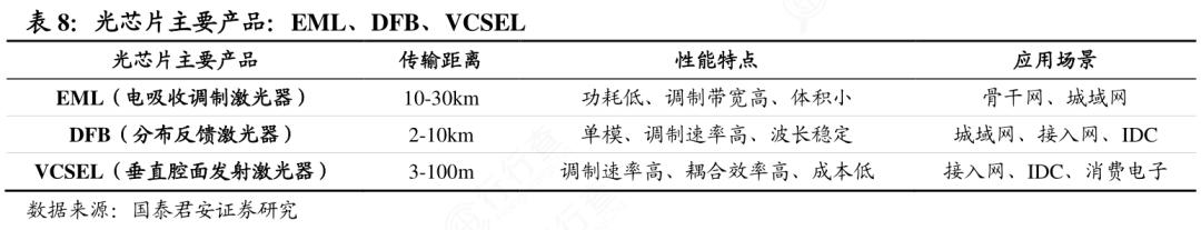 光迅科技:老牌国家队,自研DFB芯片,具备“芯片-器件-模块”垂直整合能力,受益于国产算力建设。