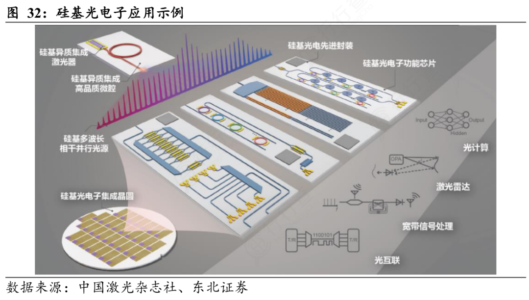 高带宽是光芯片的核心特征之一,光芯片的单片通信带宽达太赫兹级,远超电子芯片。另外,光信号传输能耗仅为电信号的1/10,可以适配高密度算力场景。不仅如此,光芯片的高集成性能够实现多功能器件的片上集成,推动设备微型化。