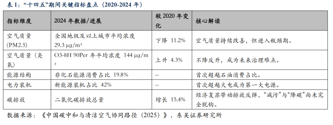 ![]() ![]() 1. 最新观点 1.1. 《中国碳中和与清洁空气协同路径 2025》发布,“十五五”锁定“降碳减污”深度协同 2025 年 12 月 14 日,清洁空气政策伙伴关系(CCAPP)2025 年度会议在海口召开, 会上正式发布了《中国碳中和与清洁空气协同路径(2025)》年度报告,报告对“十四 五”期间的各项指标进行了详尽盘点。会议以“迈向‘十五五’:协同治理新征程”为主题,中国工程院院士郝吉明、贺克斌及生态环境部相关领导出席,重点研讨了“十五五”期间如何通过结构转型与标准升级,破解当前“减污难降碳”的深层次矛盾。