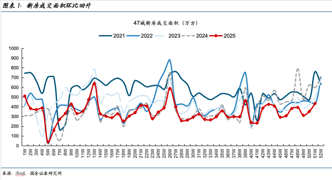 新房市场年末冲量,重点城市优质项目入市有所增加,带动新房市场整体回暖。本周新房销售面积显著回升,47城新房成交面积录得434.0万平方米,创下10月以来周度成交新高。二手房成交量边际回升,整体延续11月以来的态势。