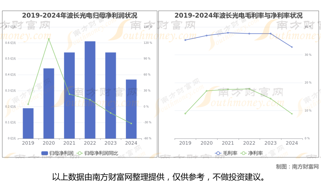 2024年公司归母净利润3695.93万元,同比增长-31.72%。净利润3695.93万,近5年复合年增长率-4.29%;净利率8.85%,近5年复合年增长率-15.15%;毛利率32.79%,近5年复合年增长率-2.92%。
