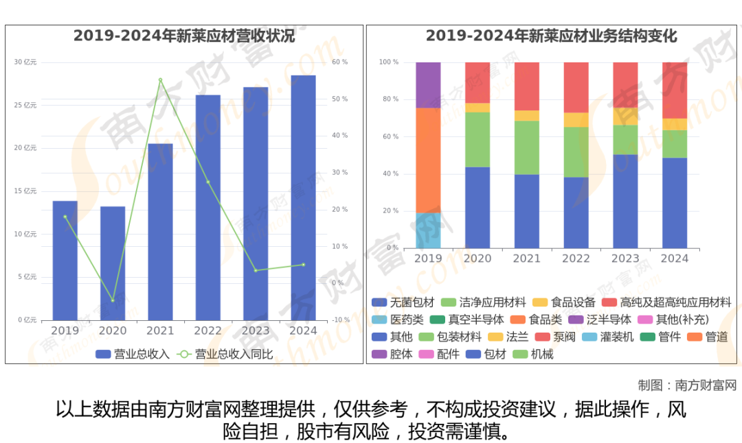 据年报数据显示(如上图),新莱应材过去一年实现营业收入28.49亿,同比增长5.08%,近5年复合年增长率21.14%。
