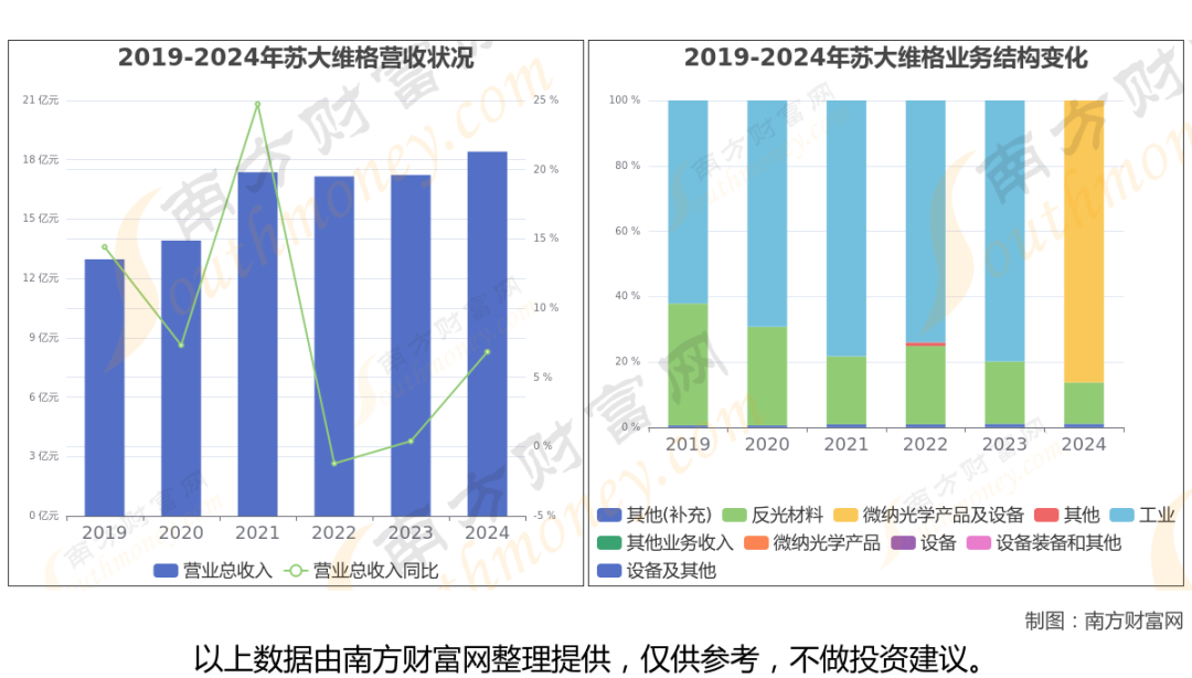 苏大维格于2012年6月28日在深圳证券交易所上市,公司主营业务为主营业务包含微纳结构产品制造和技术服务以及反光材料两大板块。