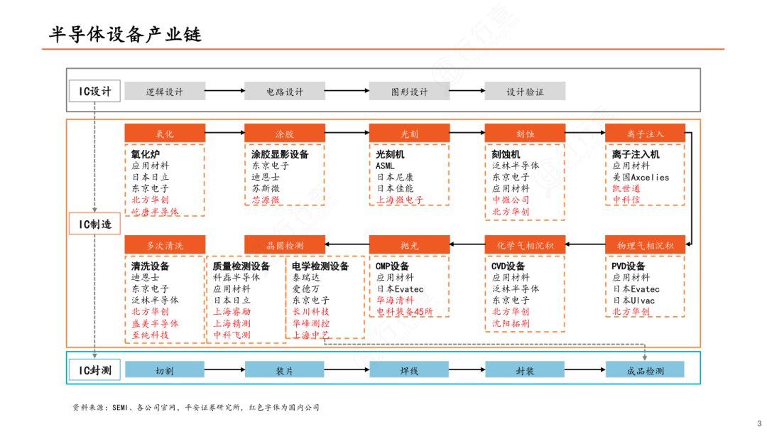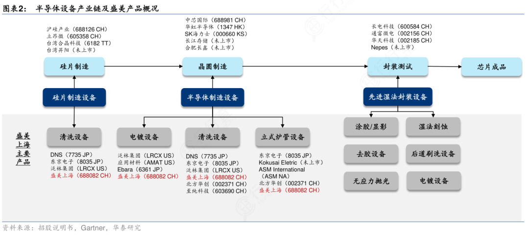 国外代表企业有美国应用材料(AMAT)、日本东京电子(TEL);国内有北方华创、盛美上海(部分环节覆盖)等。