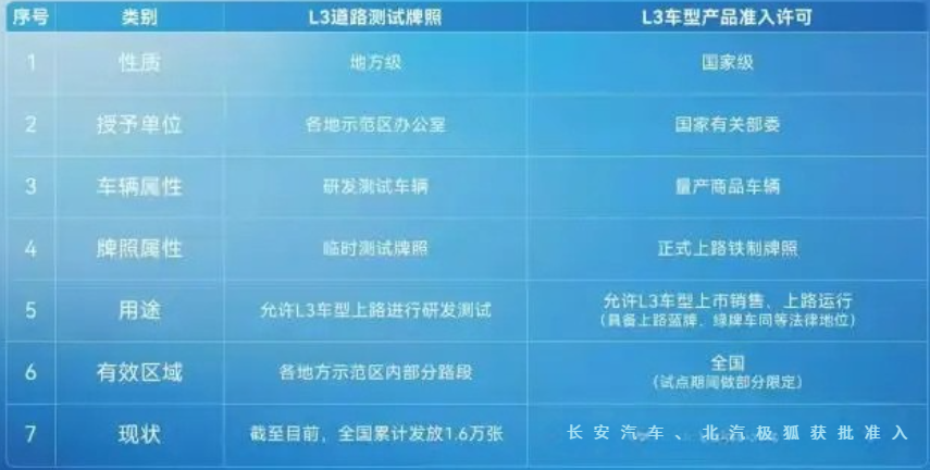 12月15日工信部公布我国首批L3自动驾驶车型获准入许可后的关键一步。首批获准的两款车型——长安汽车旗下深蓝SL03和北汽旗下极狐阿尔法S,将分别在重庆和北京划定的特定路段开展L3级有条件自动驾驶上路通行试点。