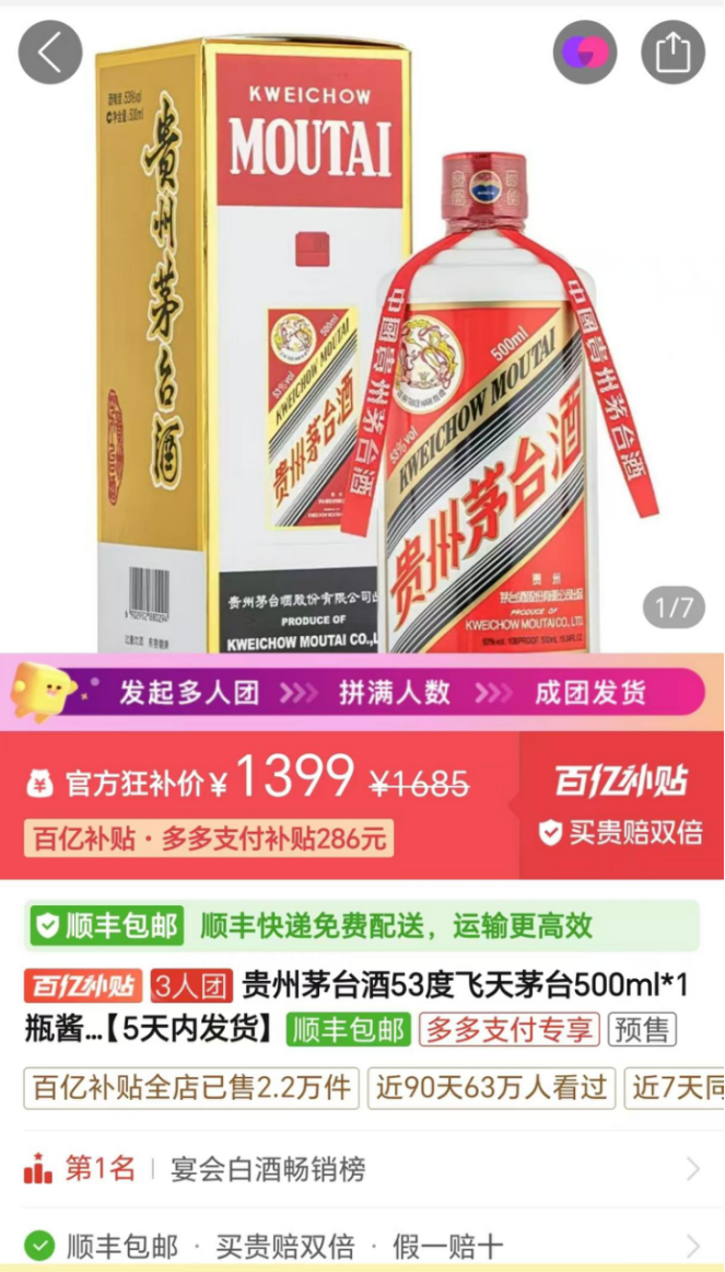 市场动态显示,12月3日,拼多多百亿补贴中,飞天茅台“拼团价”已降至1399元/瓶,击穿官方指导价。同时,该店铺承诺“买贵赔双倍,假一赔十”。名酒“价格神话”的退潮,正使华致酒行净利润面临显著下滑压力 。