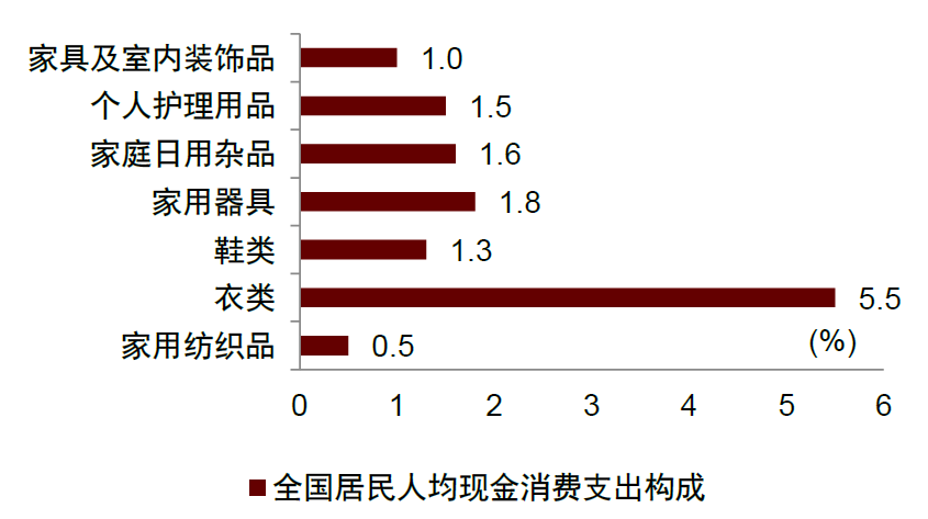 图表2:2023年居民现金消费支出构成:生活及服装类