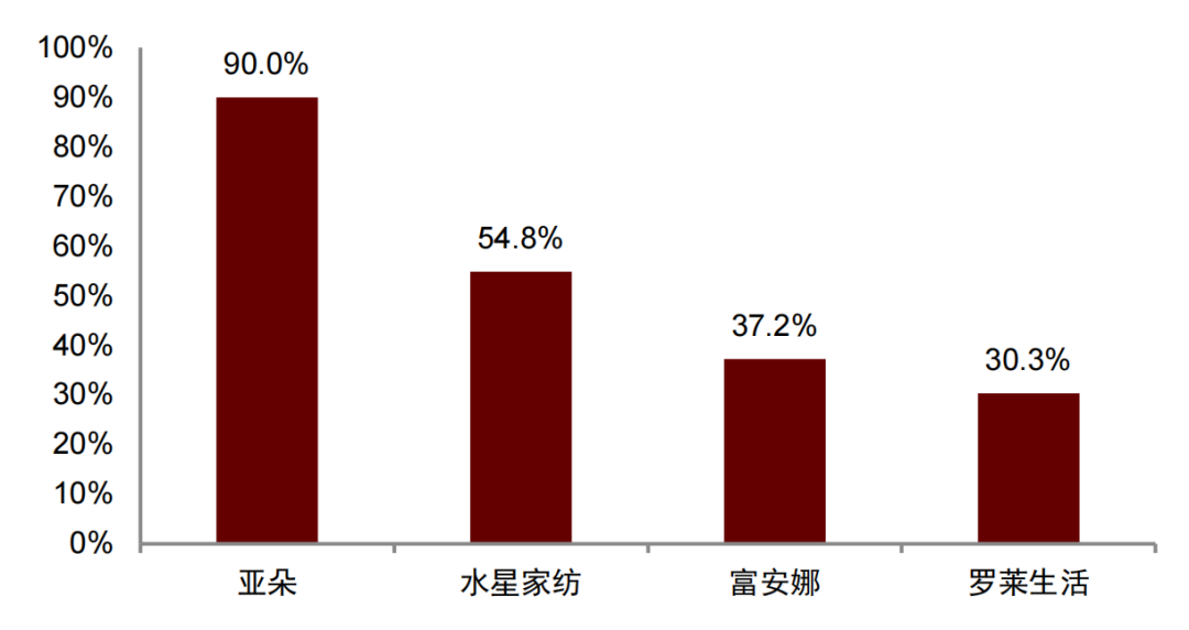 虽然线下渠道占比有所下降,但线下渠道仍是传统家纺公司接触消费者的重要方式。对于传统家纺公司而言,线下的门店一方面是与原先的高消费力客群维系关系实现销售的重要渠道,同时也是让消费者试用产品提升品牌认知度的重要媒介。