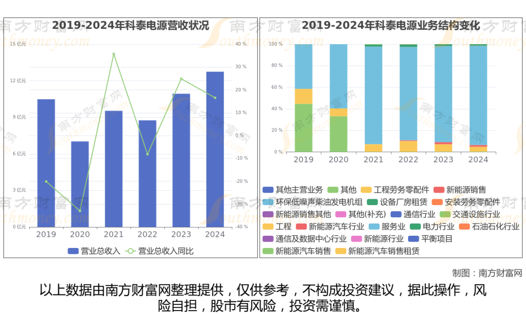 根据南方财富网产业链数据显示,公司产品线涵盖环保低噪声柴油发电机组、新能源汽车及动力电池、工程劳务零配件、设备厂房租赁等产品;产品广泛应用于电源设备、储能、数据中心、壳资源、5G、核能核电、节能环保等领域。