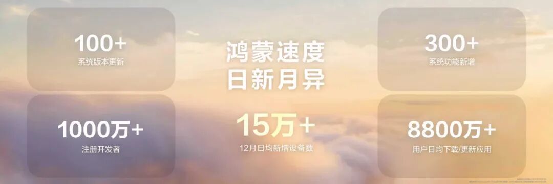 技术创新带来的能力跃升,引动了规模效应。据了解,鸿蒙系统版本更新次数超过100次,系统功能新增超过300项,注册开发者超过1000万,12月以来鸿蒙系统每天新增设备数量超过15万台。目前,排名前5000的应用已经全面在鸿蒙系统上架。