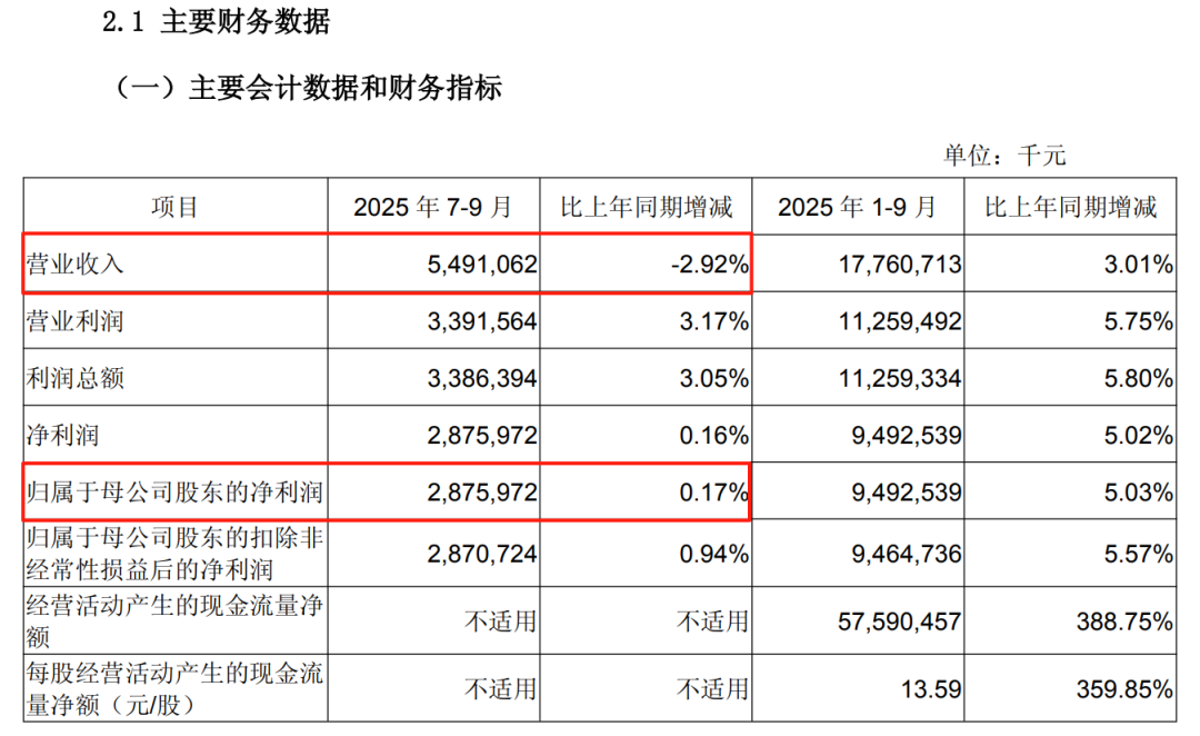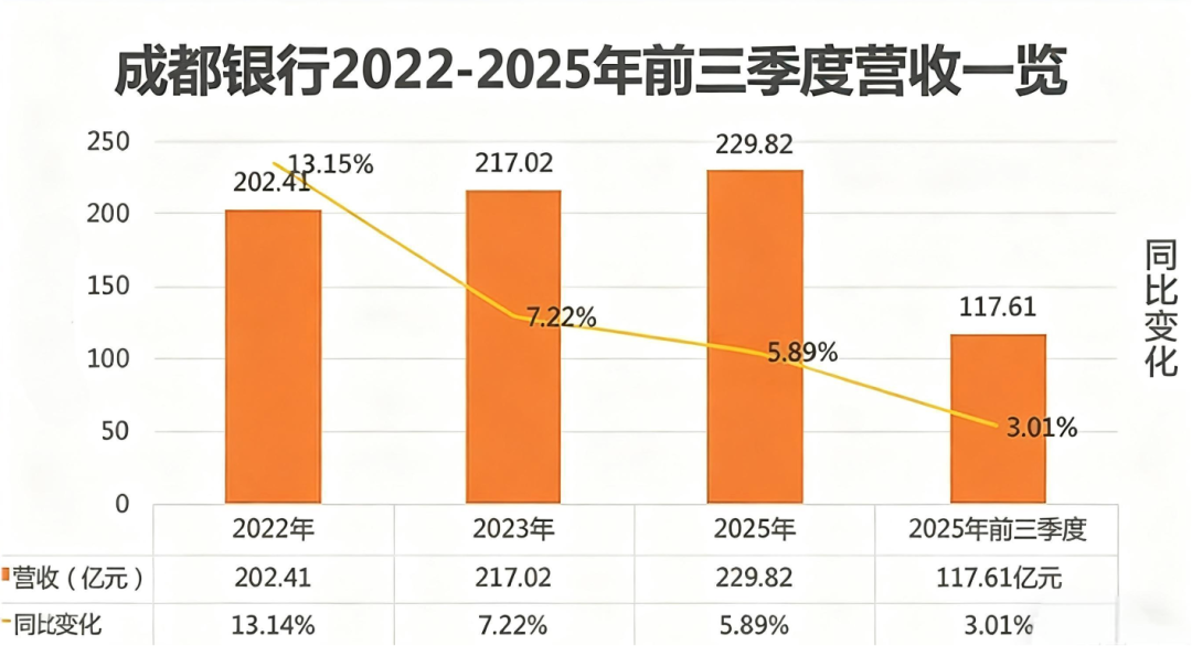 2025 年三季报显示,这家银行营收同比下降 2.92%,净利润仅微增 0.17%,远低于市场预期,与此前数年的高速增长形成鲜明反差。