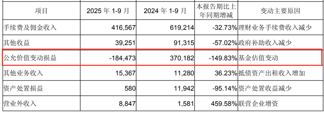 其中,公允价值变动收益从上年同期的 3.7 亿元转为浮亏 1.84 亿元,意味着其在基金、债券等投资领域遭遇重创。