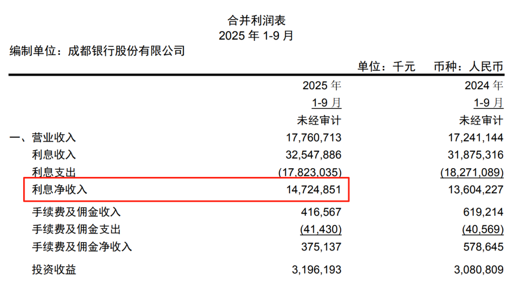 成都银行的三季报,堪称 “增收不增利” 的典型样本。前三季度,公司非息收入同比大降 16.52%,成为拖累营收的核心因素。