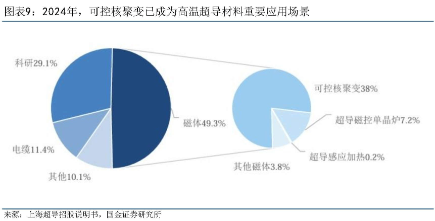 据了解,高温超导材料具有零电阻、高载流等独特性能。根据国金证券的研报,截至2024年,高温超导材料下游应用领域中,可控核聚变装置磁体占比38%,已经成为高温超导材料最大单一应用场景。
