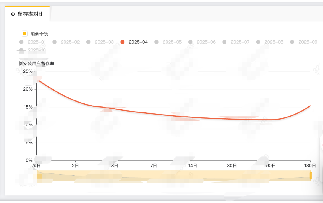 然而,豆包在发布相当长一段时间后,却走出了一条罕见的「微笑曲线」——有网友在即刻称豆包 Q2 的新用户安装留存率,在 Q4 出现了翘尾现象。180 天留存>90 天留存,留存数据出现回暖和「翘尾」现象。