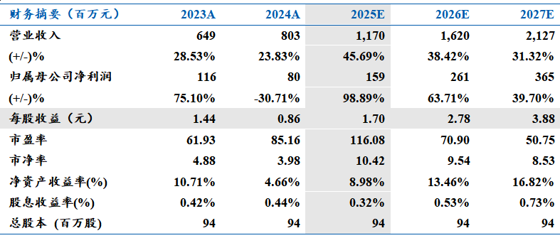 盈利预测与投资评级:考虑到公司半导体业务放量速度超预期,且股份支付费用短期压制表观利润,预计公司2025-2027年归母净利润分别为1.59/2.61/3.65亿元,对应PE分别为116/71/51倍。鉴于公司半导体营收占比持续提升,估值体系有望由面板设备向半导体设备切换,首次覆盖给予“增持”评级。
