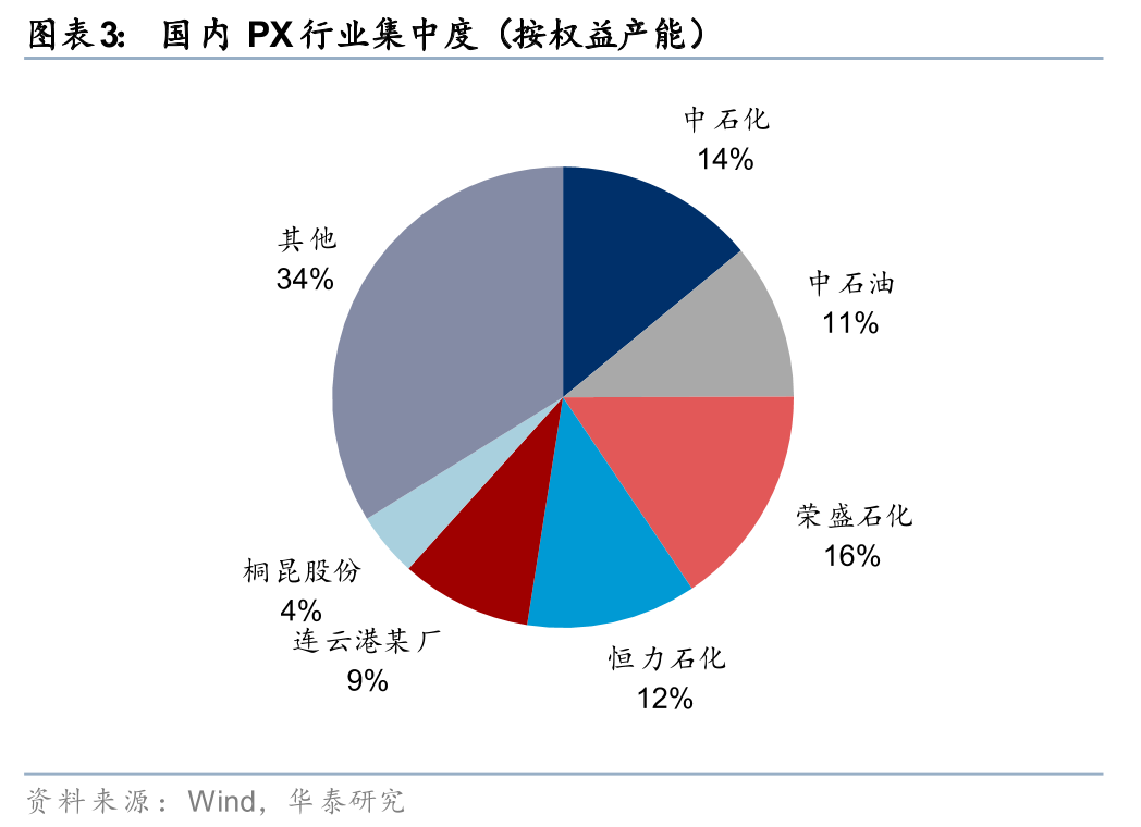 我国PX行业集中度较高,截止25年11月按权益产能计算的CR5为62%,主要企业及产能包括荣盛石化680万吨、中国石化611万吨、恒力石化520万吨、中国石油477万吨、连云港某厂400万吨,此外桐昆股份因持有20%浙石化股权,拥有196万吨权益产能。考虑26年国内无明确PX新增产能,美联储降息对全球宏观经济及出行需求的刺激或将逐步显现,海外汽柴油价差提升或施压PX装置负荷,我们认为26年海内外PX供需或将维持紧平衡,行业高景气有望延续,具备PX产能的炼化一体化龙头企业有望受益。