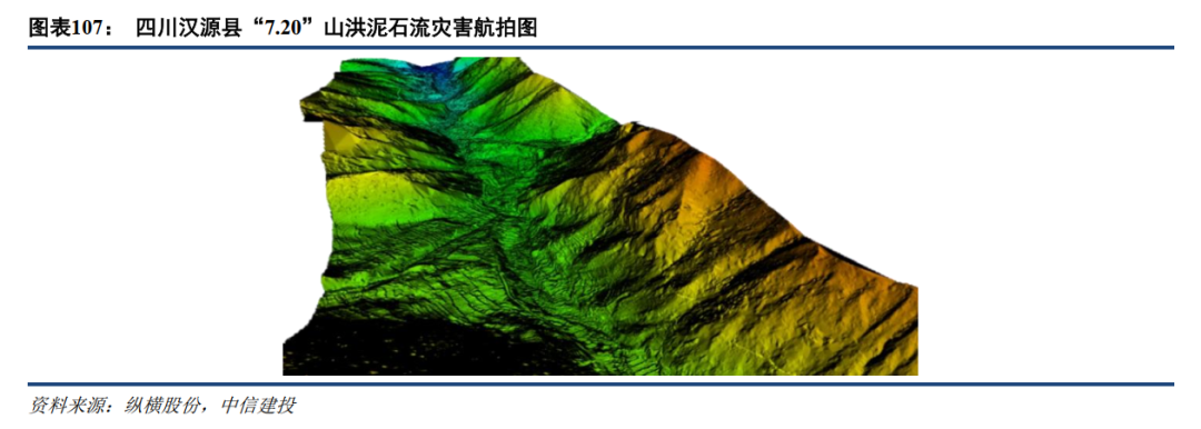 无人机机动性强、可快速开展工作,常用于对灾区进行航测。无人机可在灾后数小时内快速高效获取三维激光模型,为救灾提供基础环境条件,直观了解真实状况,帮助制定救援方案。对于地质灾害隐患区域比如山体滑坡、地面塌陷等,无人机可以进行近距离拍摄、采集数据,获取变形程度、环境结构等信息,无需担心救援人员的安全风险和对环境的二次伤害。