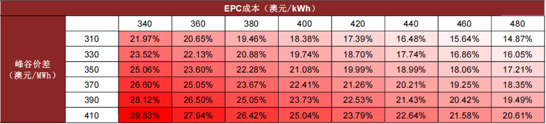 价差趋缓下经济性仍具支撑,并为亚太绿电绿氢输出奠定基础。虽然2025年以来峰谷价差相对下降,但根据我们的模型测算,在仅考虑峰谷价差套利条件下,EPC成本在480澳元/MWh,平均日内峰谷价差在均值362澳元/MWh时,其IRR可达18%,投资回收期不到6年,经济性依旧较为可观,大储的收益弹性与投资吸引力仍较强。