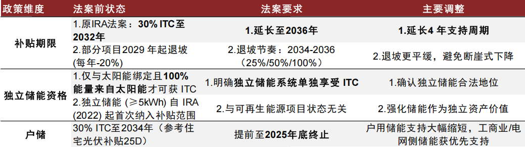 资料来源:OBBBA法案,IRA法案,中金公司研究部