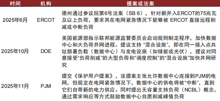 需求来源1:在美国电力容量有限并网困难下,更多AIDC通过配储增强灵活互联性(Flexible Interconnection),进而加快并网速度。灵活互联是一种基于实时电网状况动态调整能源接入电网的方式。AIDC通过配置部分储能可实现灵活互联(支撑负荷峰值、主动响应电网需求、提高用户侧负荷调节能力),即大部分时间利用现有电网容量,仅在必要时调整用电以保护电网,从而加快并网速度,而无需等待数年的基础设施升级。