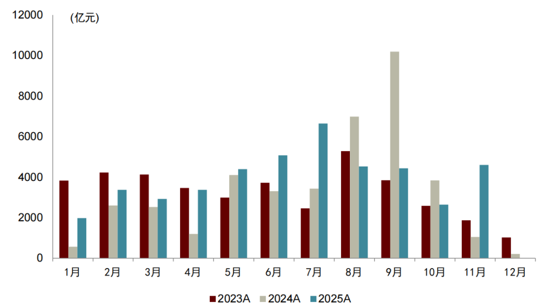 2025年10月底新增2000亿元专项债额度,有望给1Q26实物工作量的形成提供支撑。10月31日发改委召开新闻发布会[4],提出加快推动扩大有效投资政策落地实施,从地方政府债务结存限额中安排了5000亿元,用于补充地方政府综合财力和扩大有效投资。其中,新增了2000亿元专项债券额度,专门用于支持部分省份投资建设。2025年11月单月新增专项债发行4605亿元,同比 340%,考虑到资金落地存在一定滞后,我们看好1Q26实物工作量的转化效果。