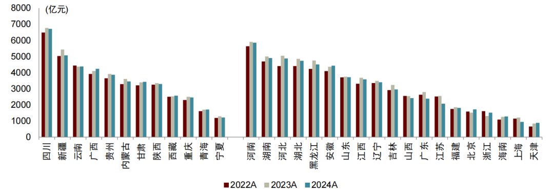 1)从政策维度看,四川定位为全国唯一战略腹地省份,有望充分享受政策红利。2024年1月23日国务院在关于《四川省国土空间规划(2021年-2035年)》的批复中指出,四川省地处长江上游、西南内陆,是我国发展的战略腹地,是支撑新时代西部大开发、长江经济带发展等国家战略实施的重要地区。我们认为四川有望加速承接沿海地区产业资源转移,带来稳定的固定资产投资需求。