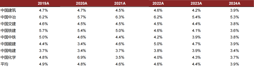 龙头企业资金成本优势明显。我们从报表层面测算的八大建筑央企平均资金成本约为4%,若从信用债发行情况来看,我们统计的2024年期间发行的建筑企业信用债的利率平均值为2.73%(仅包括固定利率,未统计浮动利率,下同),其中建筑央企(包括母公司及下属各子公司工程局)发行的信用债平均利率为2.32%,低于行业平均水平。