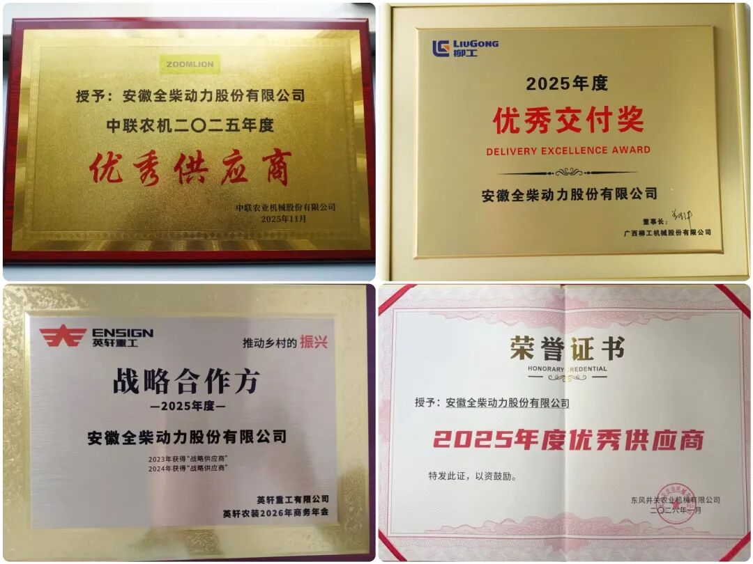 2025年,全柴动力在商用车动力与非道路农机两大领域同步发力,凭借领先的技术实力、可靠的产品质量以及完善的服务体系,赢得了众多主流主机企业的信赖,连续收获多项重磅荣誉,实现了市场与口碑的双丰收。