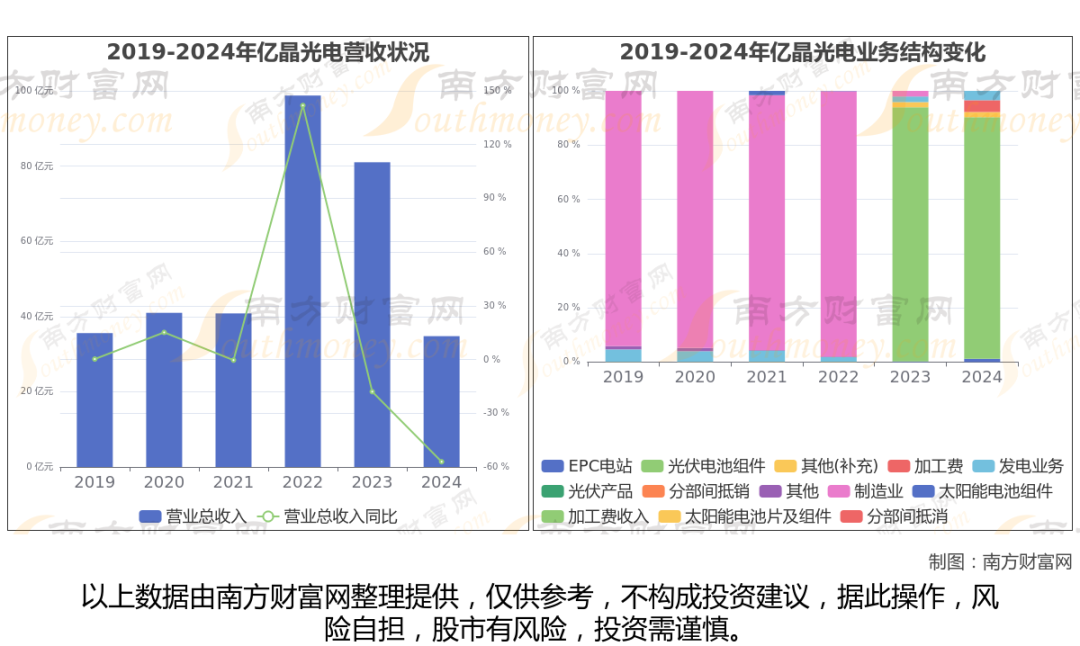 亿晶光电于2003年1月23日在上海证券交易所上市,公司主营业务为晶棒/硅锭生长、硅片加工、电池制造、组件封装、光伏发电。