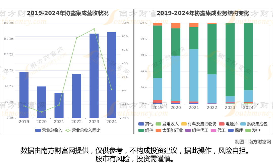 (如上图)2024年协鑫集成公司营业总收入为162.4亿,同比增长1.7%,近5年复合增长率为28.5%。