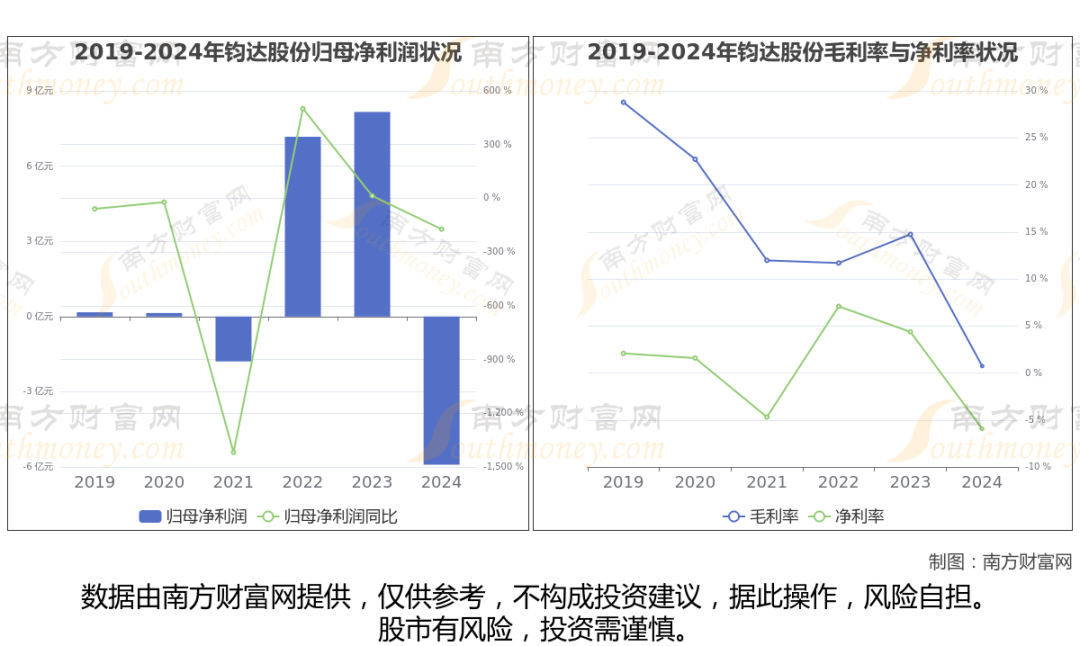 数据显示(如上图),钧达股份2024年营业收入为99.52亿,同比增长-46.66%,近5年复合年增长率84.52%。