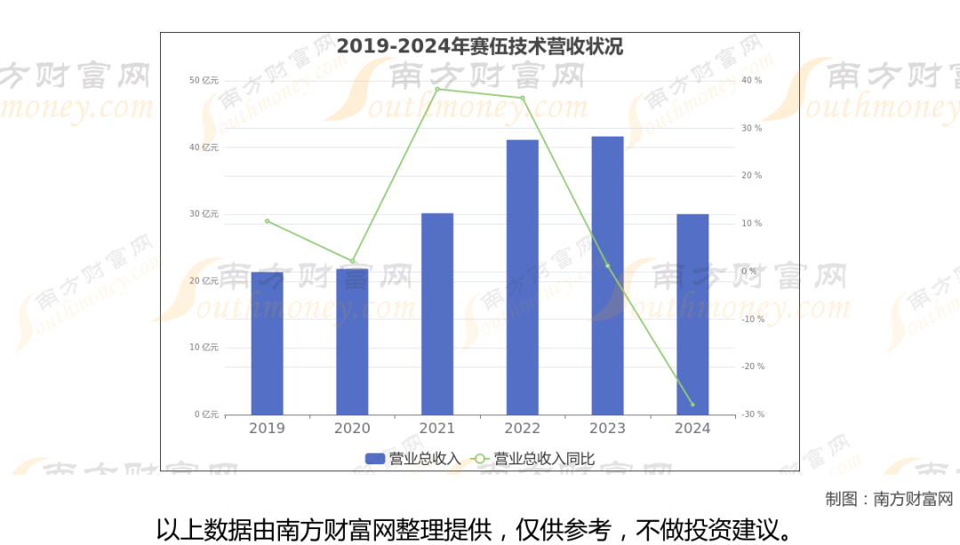 据年报数据显示(如上图),赛伍技术过去一年实现营业收入30.04亿,同比增长-27.89%,近5年复合年增长率8.31%。