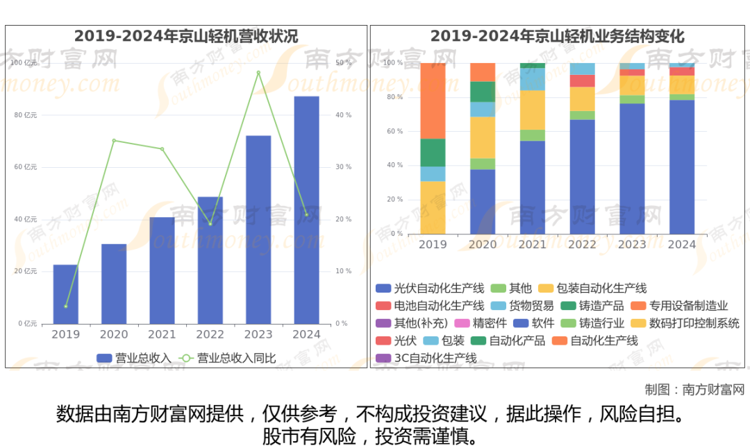 京山轻机于1998年6月26日在深圳证券交易所上市,公司主营业务为主要从事高端智能成套装备的研发、设计、制造、销售与服务。