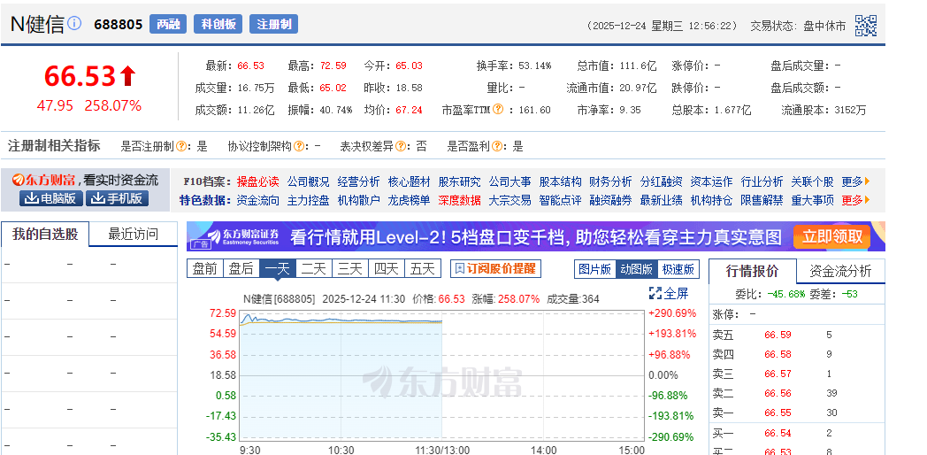 2025年12月24日,全球最大超导磁体独立供应商、国家级专精特新“小巨人”健信超导(688805.SH)正式登陆科创板,发行价18.58元/股,开盘即飙升至65.03元,大涨250%,总市值突破109亿元。