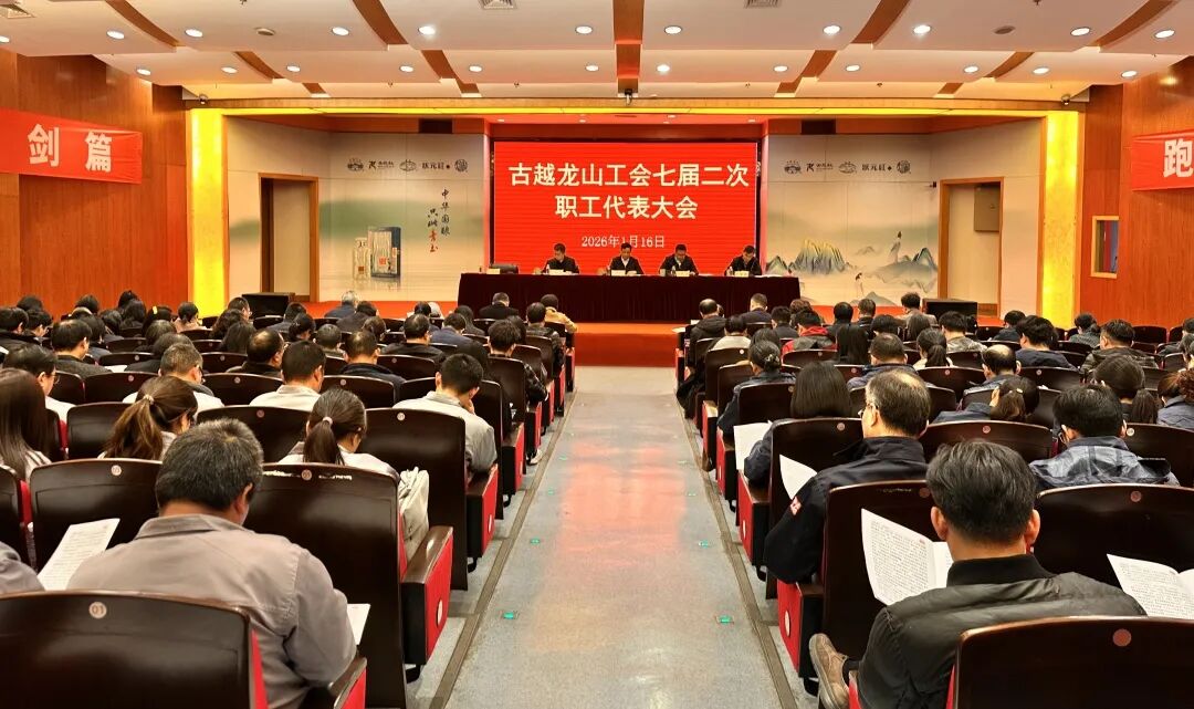 1月16日下午,古越龙山工会七届二次职工代表大会召开。大会总结回顾2025年主要工作,部署2026年工作思路。大会听取集团(股份)公司党委副书记、股份公司总经理马川所作的《踔厉奋发 勇毅前行 续写黄酒历史经典产业高质量发展新篇章》的工作报告,审议通过《公司2026年工资集体协商协议书》《2025年度工会职工互助基金使用情况报告》,并对公司中层以上领导干部进行民主评议。集团(股份)公司党委书记、董事长孙爱保出席会议并讲话。152名职工代表出席会议。