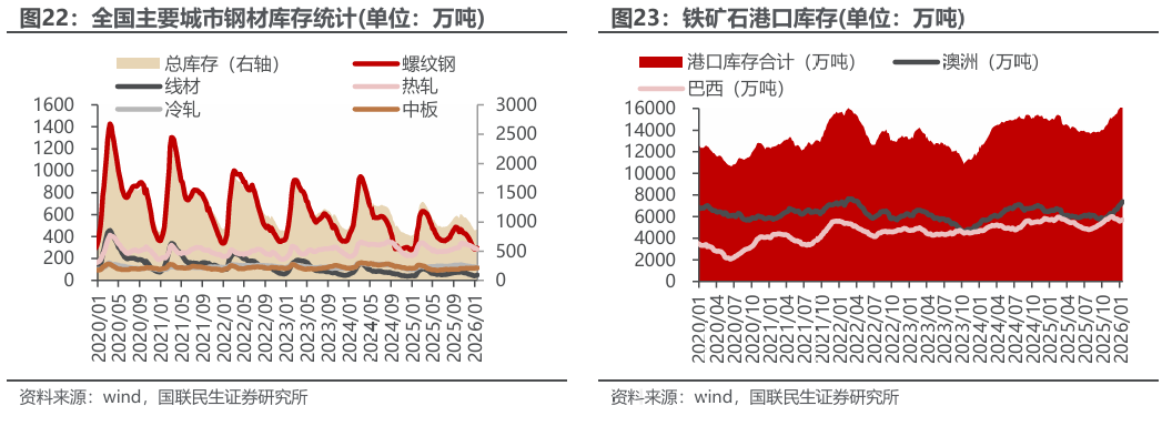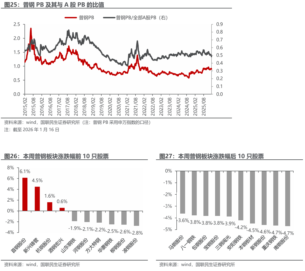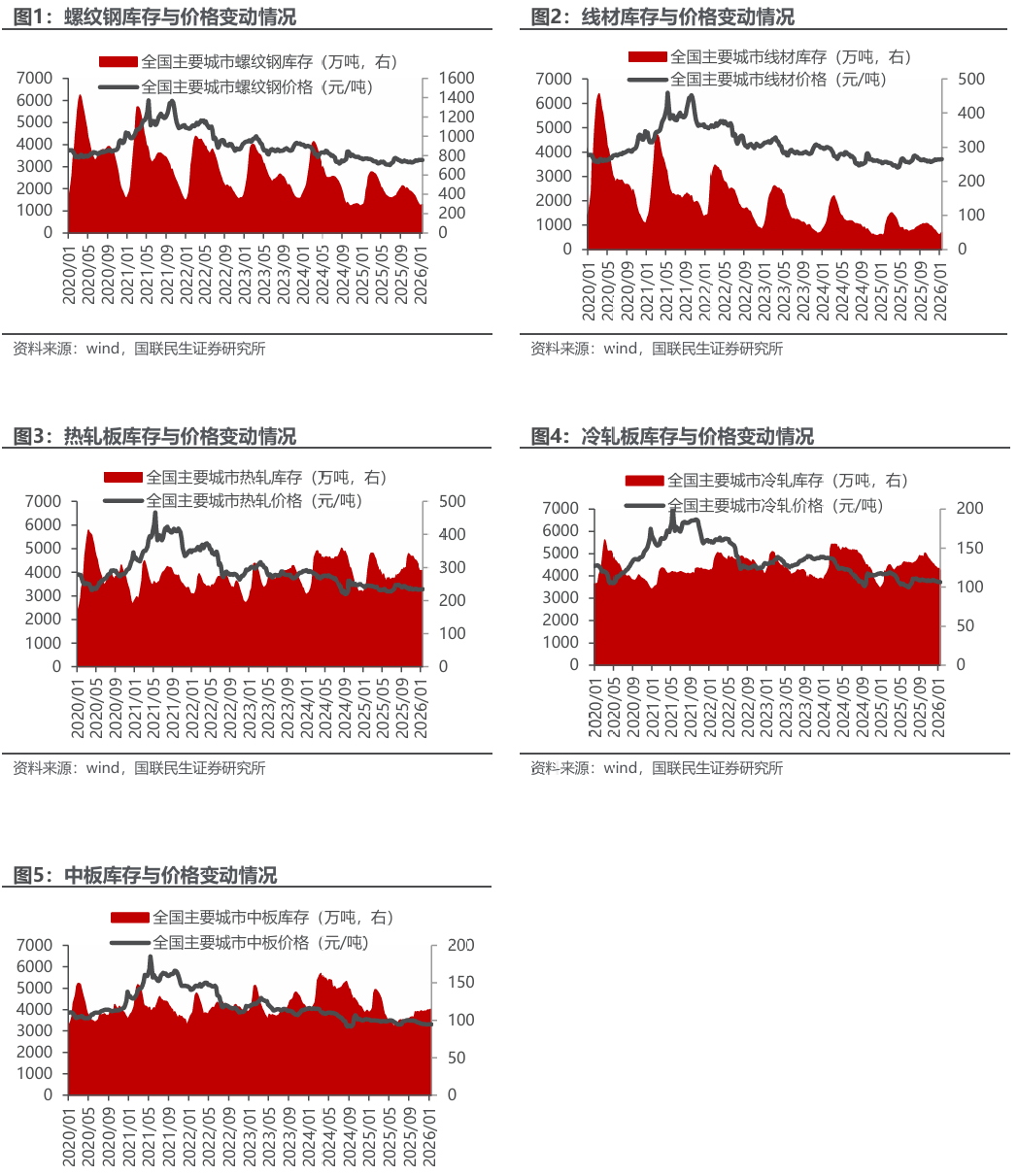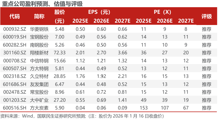 ◾ 投资建议:供需边际好转,利润有望修复。从基本面看,五大钢材产量环比上升,总库存转为去库,表需环比回升,成材供需边际好转;分品种来看,热轧、冷轧库存去库较快,库存压力有所缓解,板材强于建材。从成本端看,本周铁水产量下降,部分高炉复产有所延后,后续仍将进入高炉季节性复产阶段,成本支撑稳固。短期来看,钢材供需边际好转,钢厂利润有望修复。长期来看,高端产品出口比例将进一步提升,引导行业从规模扩张转向质量效益提升,龙头企业将进一步受益。推荐:1)普钢龙头标的:华菱钢铁、宝钢股份、南钢股份;2)特钢板块:翔楼新材、中信特钢、方大特钢;3)管材标的:久立特材、友发集团、常宝股份;4)原料板块中增量明确的标的:大中矿业(铁矿 锂矿)、方大炭素。
