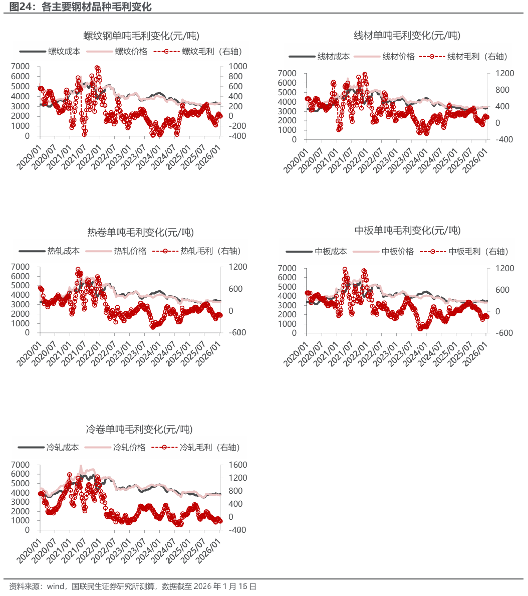 注:本毛利测算是基于即期原材料价格的含增值税毛利润估算,未包含其他运营成本及所得税等其他税费,主要用于观察行业利润变动趋势。