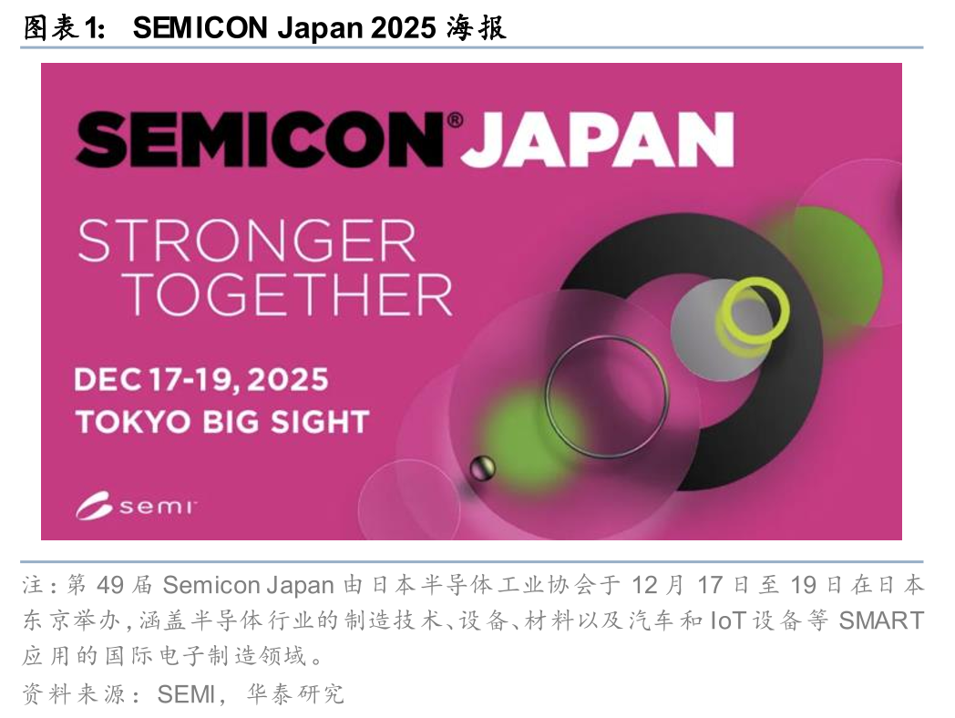过去一周,我们参加了在日本东京举办的SEMICON JAPAN半导体行业年会,同Softbank、Hoya、Screen、Advantest、Shibaura、Kokusai Electric、Fujikura、东京精密、佳能、尼康、Sony、Lasertec、TEL等企业、以及日股投资人进行了深入交流。本届展会共有来自35个国家/地区的1216家企业参加,规模远超往届。通过本次活动,我们观察到以下趋势: