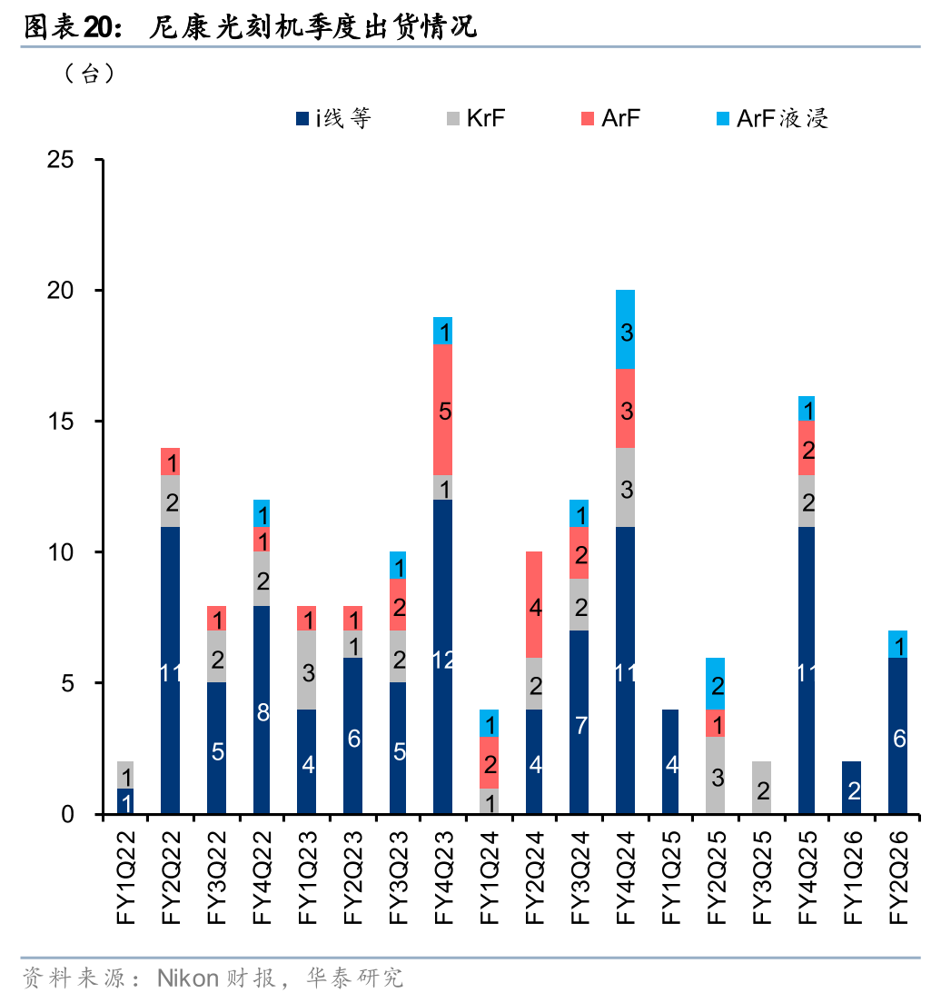 2026年上半年,尼康的精密设备(光刻机 FPD设备)业务收入下降14.3%到698亿日元,其中ArF浸没式光刻业务受客户投资推迟影响,出货为0。展望2026年全年,公司预计精密设备营收或将同比下降19.3%至1,630亿日元。