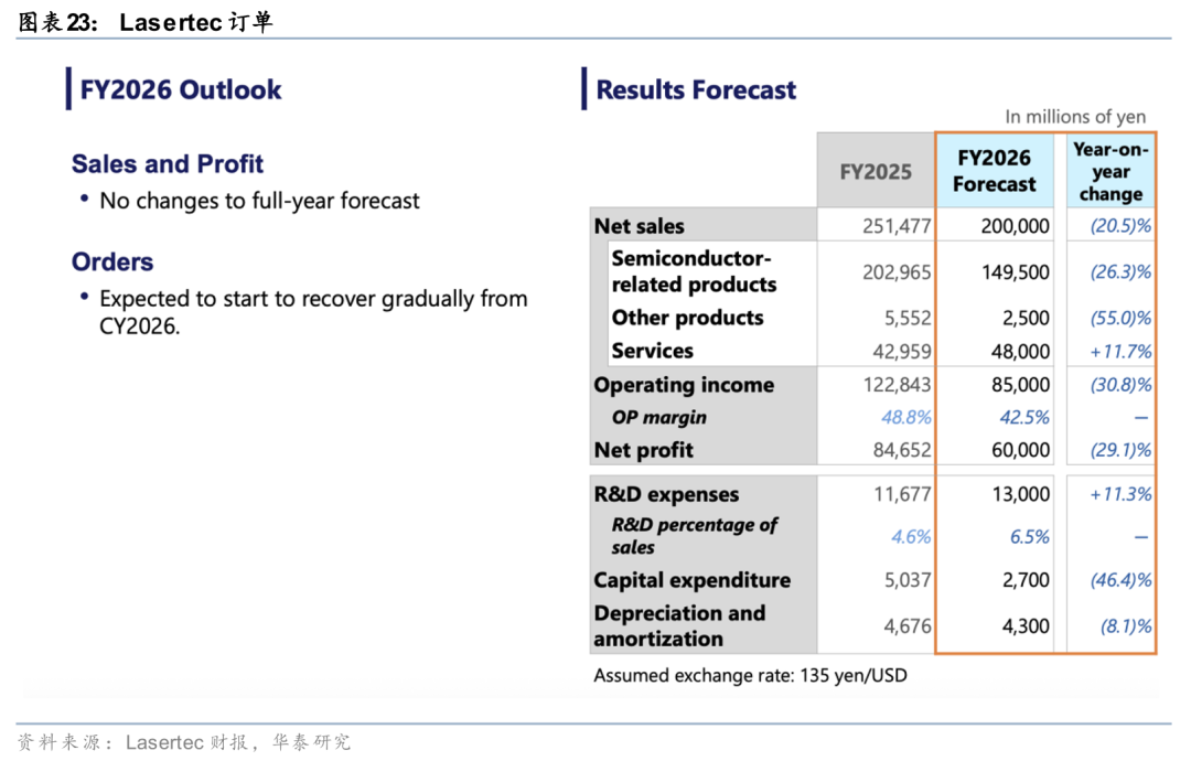 Lasertec是全球唯一的EUV光罩检测设备供应商。本次会上,公司展示了吞吐量提升三倍的新一代ACTIS A200HiT系统,并推出高亮度EUV光源技术Urashima以应对High-NA EUV的挑战。随着台积电 2nm逻辑工艺,以及三星等存储厂商进入新的扩产周期。公司看到相关设备订单开始恢复。