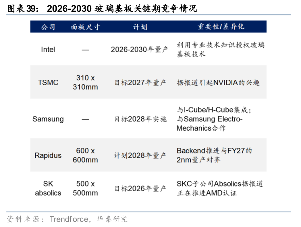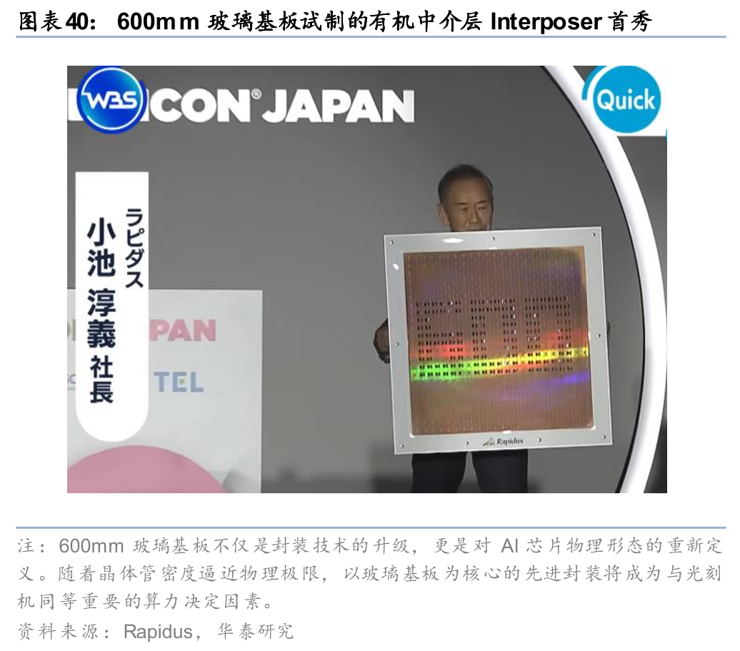 Rapidus:押注玻璃基板与 2nm,用于面板级封装,计划 2028 年量产,对标TSMC