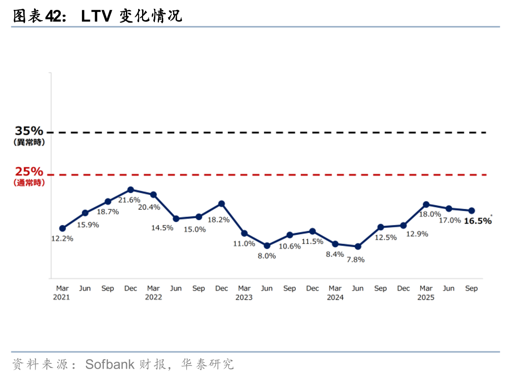 根据公司财报,软银集团1HFY25净利润2.9万亿日元创新高,主因1HFY25 OpenAI投资公允价值增加了14.6亿美元,投资成本增加8.6亿美元;公司预计于12月完成300亿美元总投资承诺。1)财务指标来看,截至2025年9月30日,公司LTV为16.5%(公司设定上限为25%),NAV 33.3万亿日元,现金储备4.2万亿日元,权益价值约40万亿日元;2)战略方面,公司宣布与OpenAI、Oracle推进Stargate数据中心项目(总投资目标5000亿美元,10GW),并预计于2026年完成对ABB机器人部门的收购;3)资金方面,公司已于2025年10月出售部分T-Mobile、NVIDIA等股份,并将运用项目融资等多元手段押注AI基建。